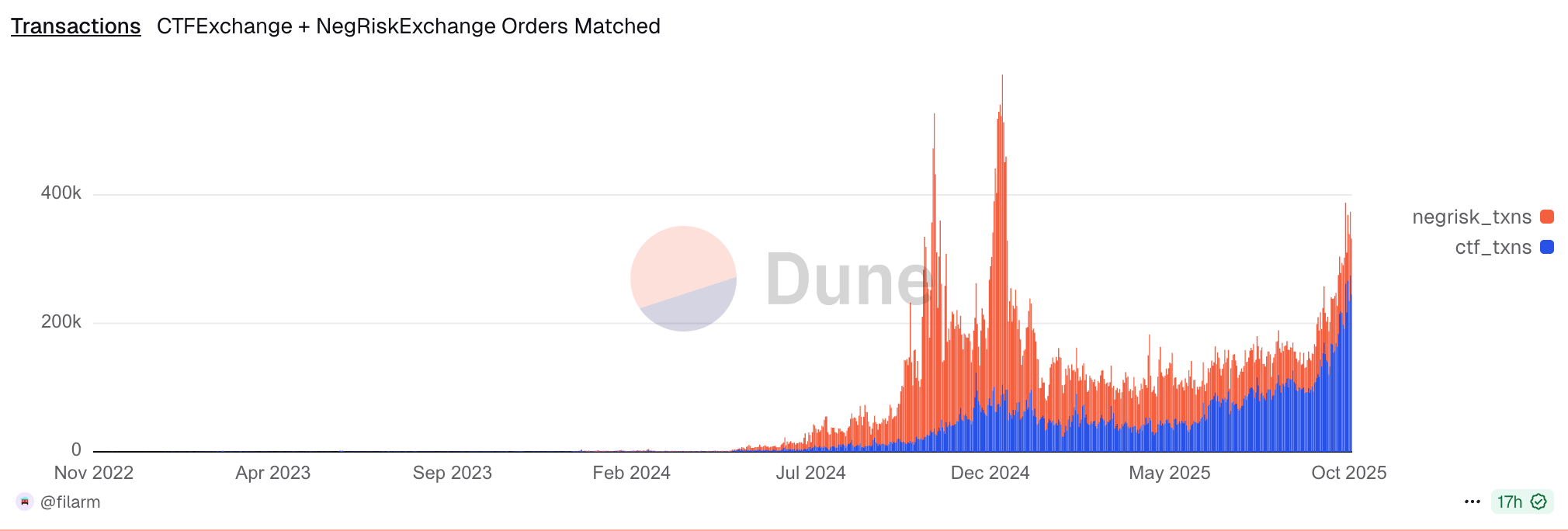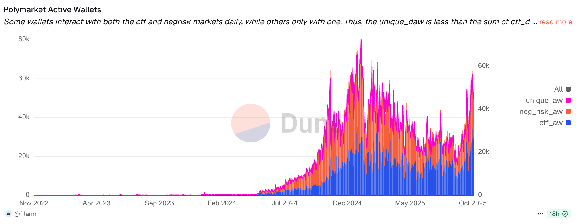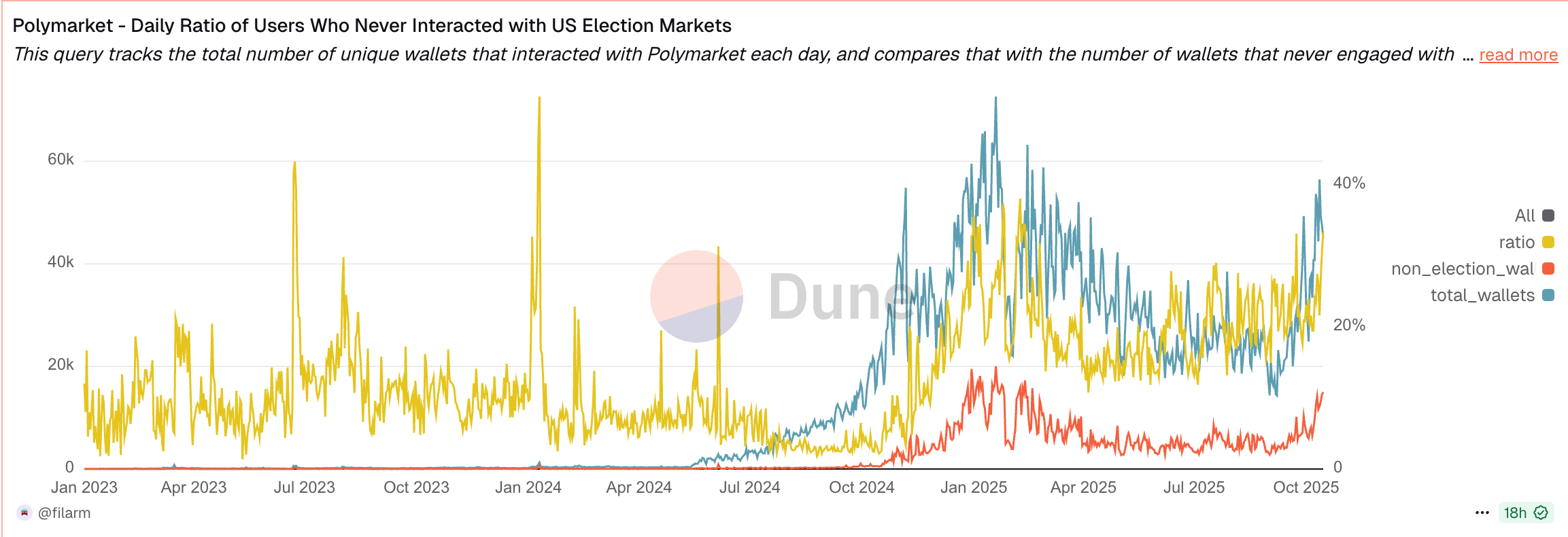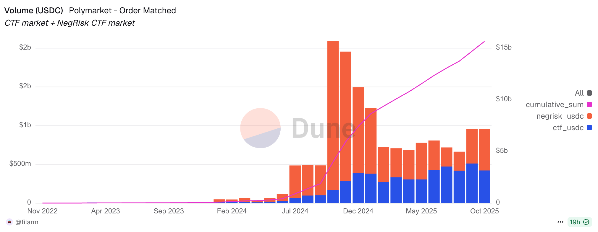 All data analysis and visualizations in this article come from @filarm on Dune Analytics. If you want to track Polymarket's metrics in real-time or dive deeper into the on-chain data that powers these insights, check out their dashboards at dune.com/filarm and make sure you follow fil on X.