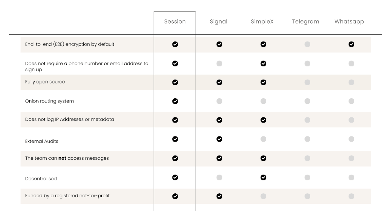 Session is aimed at privacy-minded users who want an easy, trustworthy alternative to big-name apps. Here’s how it compares: